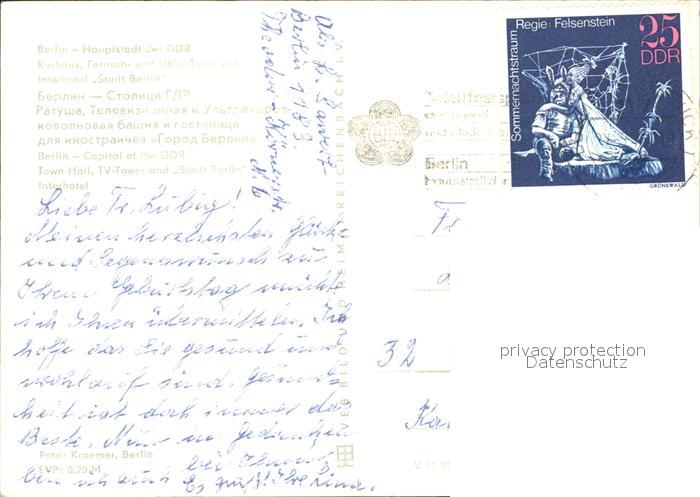72061385 alte Postkarte BERLIN CITY Rathaus Fernseh UKW Turm Interhotel Stadt Berlin bei Nacht postalisch gelaufen Erhaltung siehe scans KatCode: 11110011000000