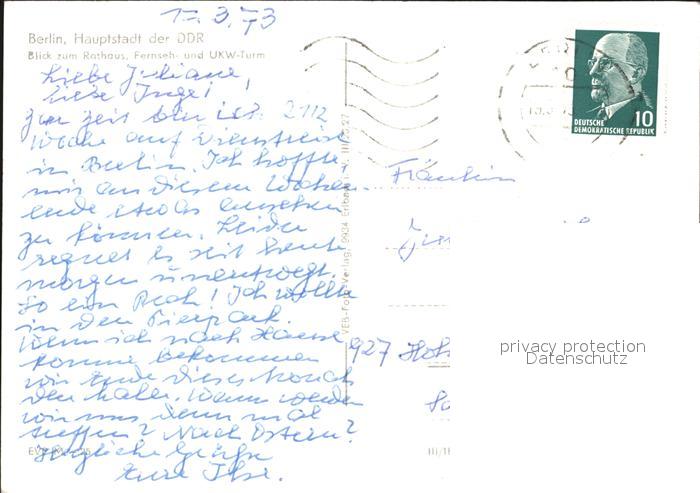 72427327 alte Postkarte BERLIN CITY Rathaus Fernsehturm postalisch gelaufen Erhaltung siehe scans KatCode: 11110011000000