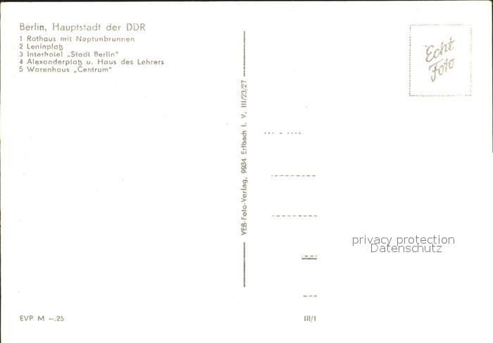 72359969 BERLIN CITY Rathaus Neptunbrunnen Leninplatz Interhotel Stadt Berlin Alexanderplatz Warenhaus Centrum postalisch nicht gelaufen Erhaltung siehe scans KatCode: 11110011000000