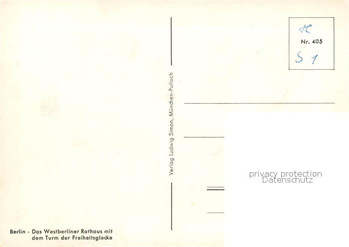 72958537 BERLIN CITY Rathaus Turm der Freiheitsglocke postalisch nicht gelaufen Erhaltung siehe scans [PaolaD17] KatCode: 11110011000000