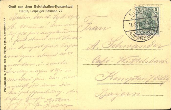 41221386 BERLIN CITY Reichshallen-Konzertsaal postalisch gelaufen gute Erhaltung Alte Ansichtskarte Postkarte alte Postkarte hz_U Katcode 11110011000000