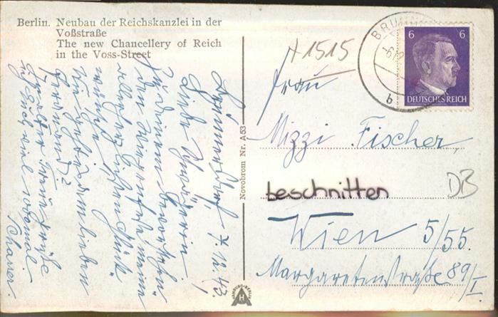 41054293 BERLIN CITY Reichskanzkei Vossstrasse postalisch gelaufen Alte Ansichtskarte Postkarte alte Postkarte Chri Katcode 11110011000000