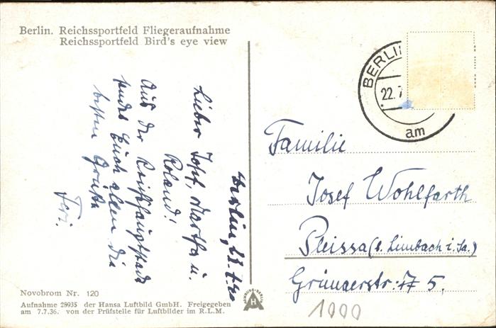 41221356 BERLIN CITY Reichssportfeld postalisch gelaufen gute Erhaltung Alte Ansichtskarte Postkarte alte Postkarte hz_U Katcode 11110011000000