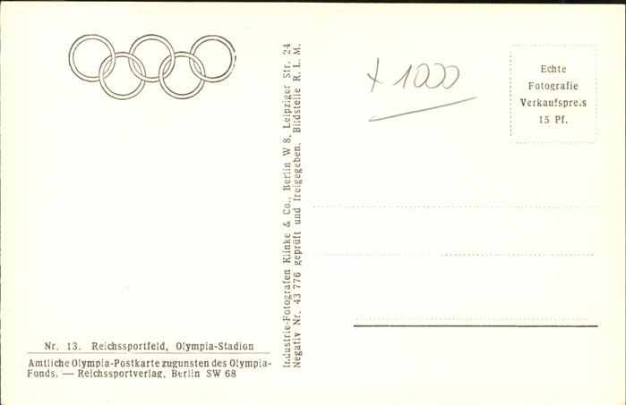 41221348 BERLIN CITY Reichssportfeld postalisch nicht gelaufen Alte Ansichtskarte Postkarte hz_U Katcode 11110011000000
