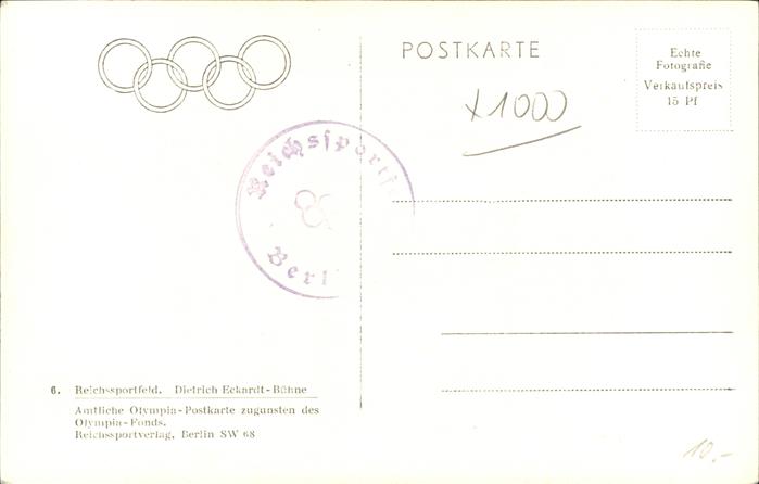 41221347 BERLIN CITY Reichssportfeld postalisch nicht gelaufen gute Erhaltung Alte Ansichtskarte Postkarte hz_U Katcode 11110011000000