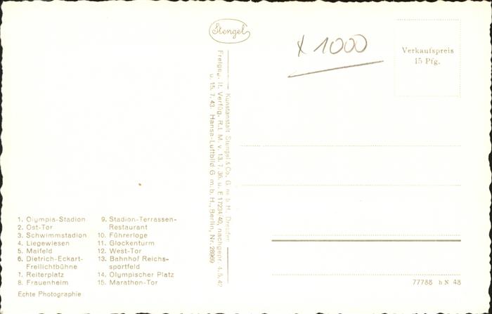 41221344 BERLIN CITY Reichssportfeld postalisch nicht gelaufen gute Erhaltung Alte Ansichtskarte Postkarte hz_U Katcode 11110011000000
