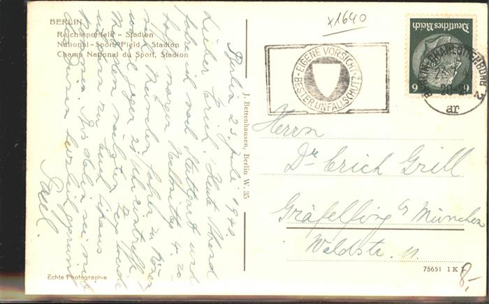 41406820 BERLIN CITY Reichssportfeld postalisch gelaufen Erhaltung siehe scans Alte Ansichtskarte Postkarte alte Postkarte hz_B Katcode 11110011000000