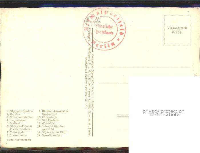 71848682 BERLIN CITY Reichssportfeld Fliegeraufnahme postalisch nicht gelaufen Erhaltung siehe scans KatCode: 11110011000000