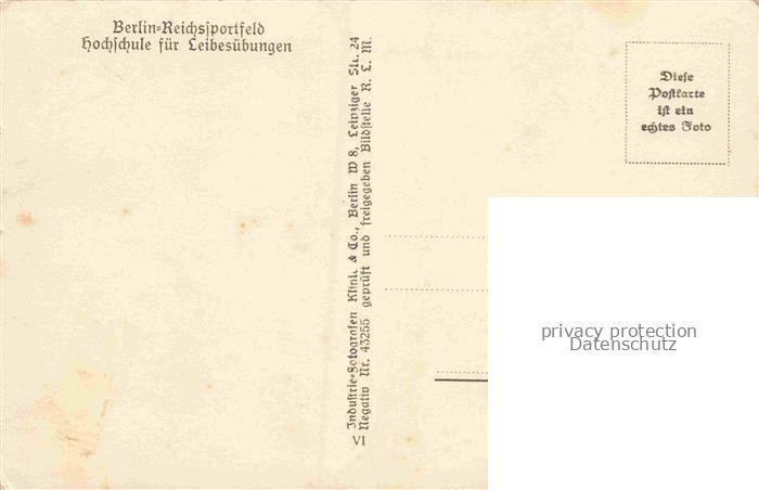 34144513 BERLIN CITY Reichssportfeld Hochschule fuer Leibesuebungen postalisch nicht gelaufen Fliegeraufnahme Erhaltung siehe scans [FriedD77] KatCode: 11110011000000