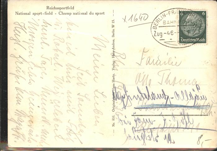 41406911 BERLIN CITY Reichssportfeld postalisch gelaufen Erhaltung siehe scans Alte Ansichtskarte Postkarte alte Postkarte hz_B Katcode 11110011000000