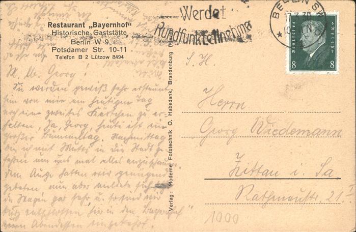 41221538 BERLIN CITY Restaurant Bayernhof postalisch gelaufen gute Erhaltung Alte Ansichtskarte Postkarte alte Postkarte hz_U Katcode 11110011000000