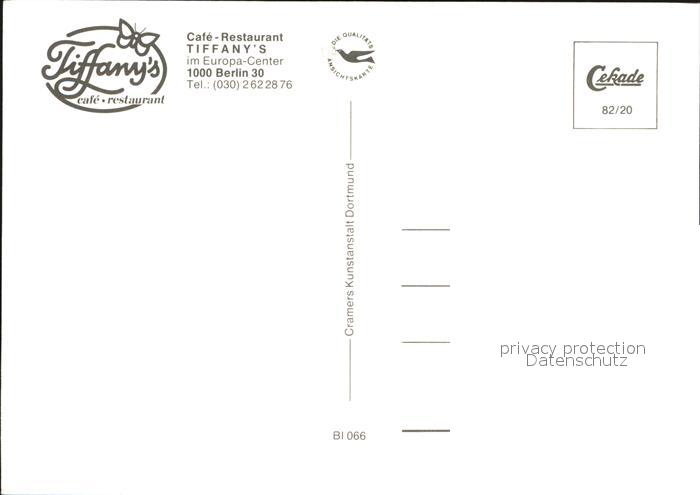 72548083 BERLIN CITY Restaurant Cafe Tiffanys im Europa Center postalisch nicht gelaufen Erhaltung siehe scans [LiesaD40 kv019box] KatCode: 11110011000000