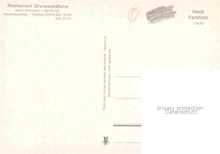72912348 BERLIN CITY Restaurant Grunewaldturm Terrasse Minigolf Havel postalisch nicht gelaufen Erhaltung siehe scans [FriedD77] KatCode: 11110011000000
