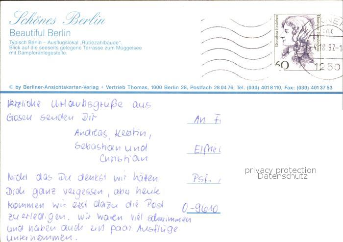 72429876 alte Postkarte BERLIN CITY Ruebezahlbaude Seeterrasse postalisch gelaufen Erhaltung siehe scans KatCode: 11110011000000
