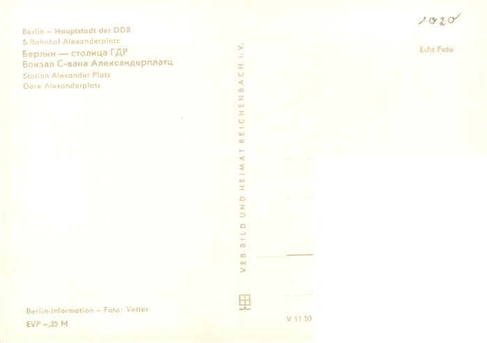 73906161 BERLIN CITY S Bahnhof Alexanderplatz postalisch nicht gelaufen Erhaltung siehe scans [WerneD78] Wern Katcode 11110011000000