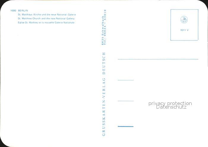 72519133 BERLIN CITY Sankt Matthaeus Kirche Nationalgalerie postalisch nicht gelaufen Erhaltung siehe scans KatCode: 11110011000000