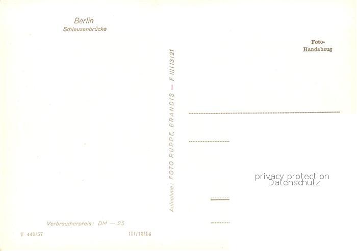 73031710 BERLIN CITY Schleusenbruecke postalisch nicht gelaufen Erhaltung siehe scans [WerneD78] KatCode: 11110011000000