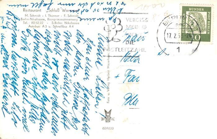 73917080 BERLIN CITY Schloss Wannsee Seeterrasse postalisch gelaufen Erhaltung siehe scans [FriedD77] alte Postkarte Frie Katcode 11110011000000