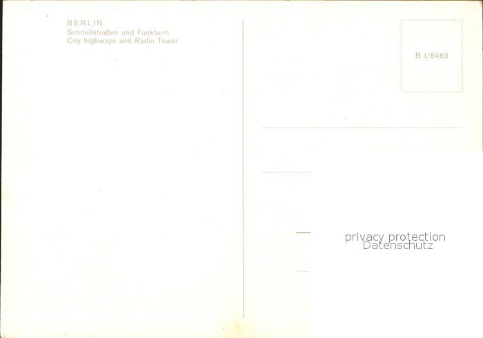 71972819 BERLIN CITY Schnellstrassen und Funkturm postalisch nicht gelaufen Erhaltung siehe scans KatCode: 11110011000000