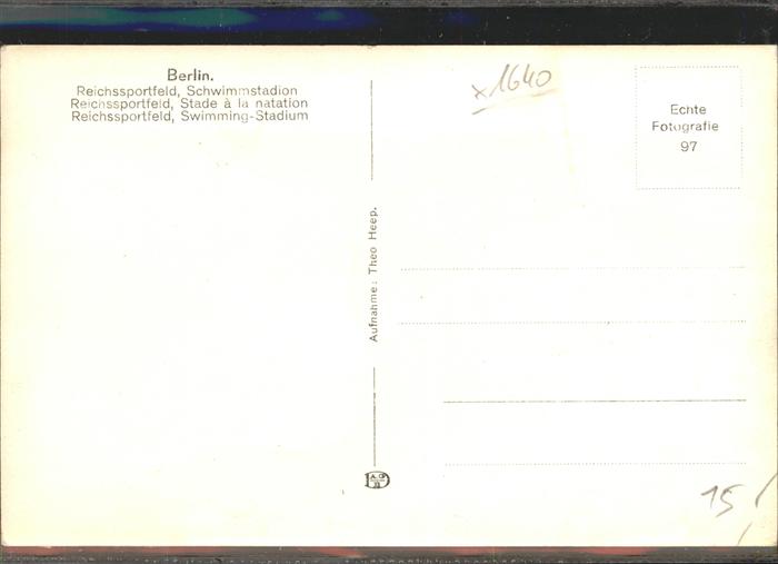 41406893 BERLIN CITY Schwimmstadion postalisch nicht gelaufen Erhaltung siehe scans Alte Ansichtskarte Postkarte hz_B Katcode 11110011000000