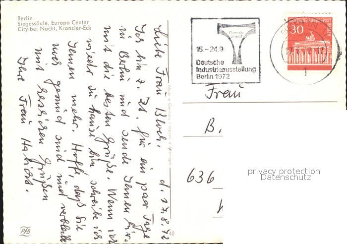 72551621 alte Postkarte BERLIN CITY Siegessaeule Europa Center Kranzler Eck Nacht postalisch gelaufen Erhaltung siehe scans [KathaD79] KatCode: 11110011000000