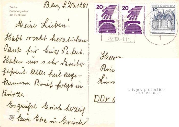 72629247 alte Postkarte BERLIN CITY Sommergarten am Funkturm postalisch gelaufen Erhaltung siehe scans [WerneD78] KatCode: 11110011000000