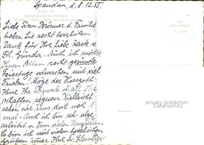 72229825 BERLIN CITY Sommergarten am Funkturm postalisch nicht gelaufen Erhaltung siehe scans KatCode: 11110011000000