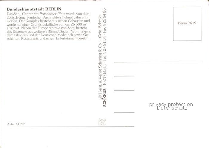 72051122 BERLIN CITY Sony Center Potsdamer Platz postalisch nicht gelaufen Erhaltung siehe scans KatCode: 11110011000000