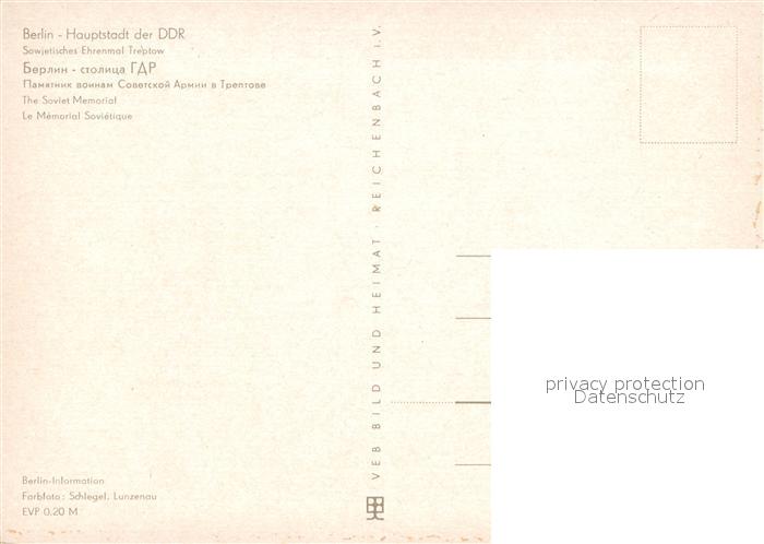 72998406 BERLIN CITY Sowjet Ehrenmal Treptow postalisch nicht gelaufen Erhaltung siehe scans [WerneD78] KatCode: 11110011000000