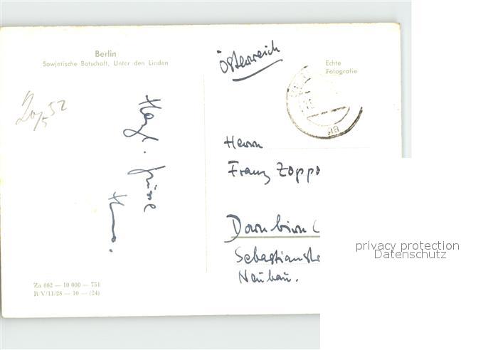 72109467 alte Postkarte BERLIN CITY Sowjetische Botschaft Unter den Linden postalisch gelaufen Erhaltung siehe scans KatCode: 11110011000000