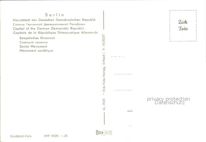 72128625 BERLIN CITY Sowjetisches Ehrenmal postalisch nicht gelaufen Erhaltung siehe scans KatCode: 11110011000000