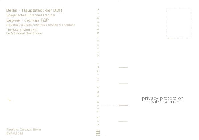 73131526 BERLIN CITY Sowjetisches Ehrenmal Treptow postalisch nicht gelaufen Erhaltung siehe scans [NatalD47] KatCode: 11110011000000