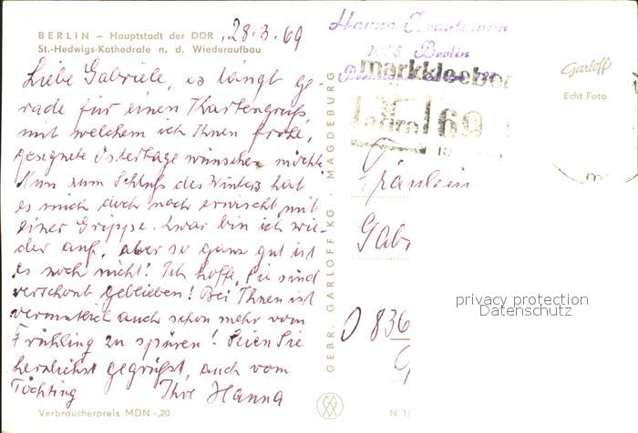 72232723 alte Postkarte BERLIN CITY St Hedwigs Kathedrale nach dem Wiederaufbau postalisch gelaufen Erhaltung siehe scans KatCode: 11110011000000