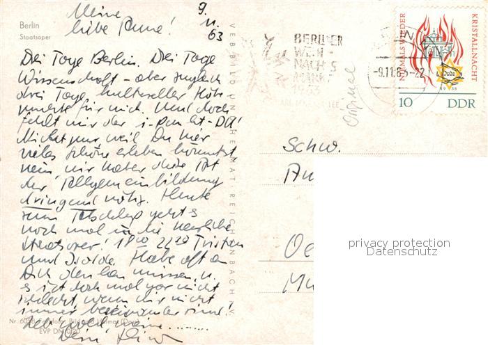 73013592 alte Postkarte BERLIN CITY Staatsoper postalisch gelaufen Erhaltung siehe scans [WerneD78] KatCode: 11110011000000
