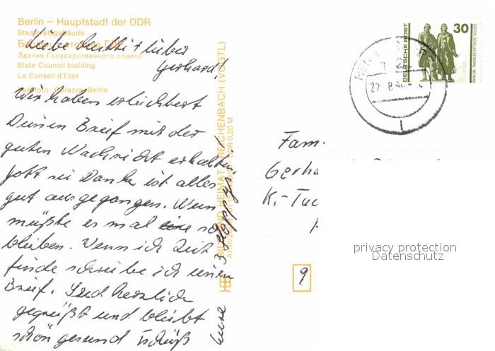 72864817 alte Postkarte BERLIN CITY Staatsratsgebaeude postalisch gelaufen Erhaltung siehe scans [NatalD47] KatCode: 11110011000000