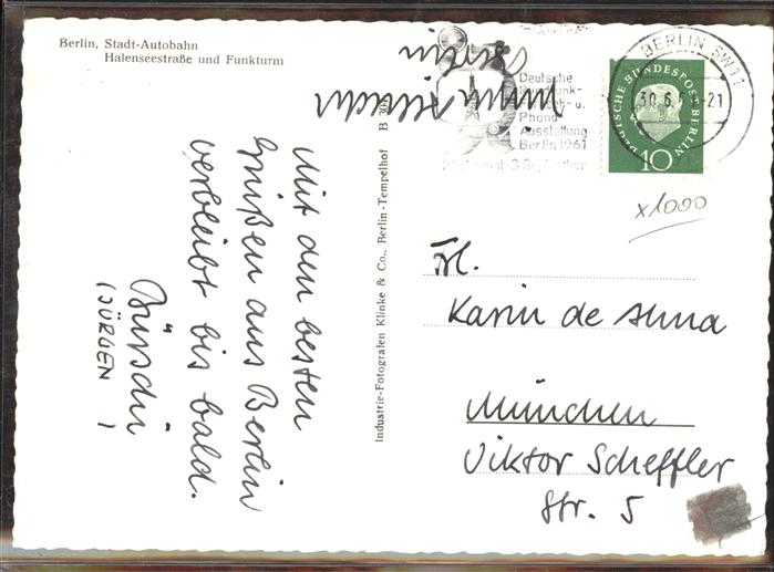 41382564 BERLIN CITY Stadt-Autobahn Halenseestr. Funkturm postalisch gelaufen Alte Ansichtskarte Postkarte alte Postkarte Stef Katcode 11110011000000