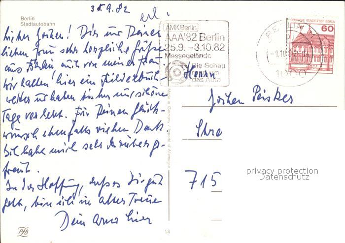 72512658 alte Postkarte BERLIN CITY Stadtautobahn postalisch gelaufen Erhaltung siehe scans KatCode: 11110011000000