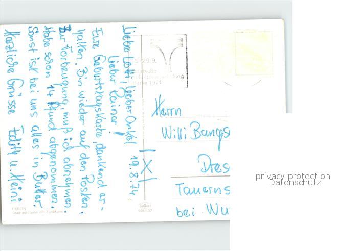 72362133 alte Postkarte BERLIN CITY Stadtautobahn mit Funkturm postalisch gelaufen Erhaltung siehe scans KatCode: 11110011000000