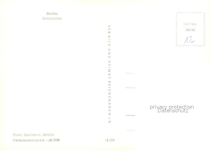 73031705 BERLIN CITY Stalinallee postalisch nicht gelaufen Erhaltung siehe scans [WerneD78] KatCode: 11110011000000