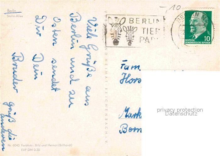72669136 alte Postkarte BERLIN CITY Stalinallee postalisch gelaufen Erhaltung siehe scans [LiesaD40] KatCode: 11110011000000