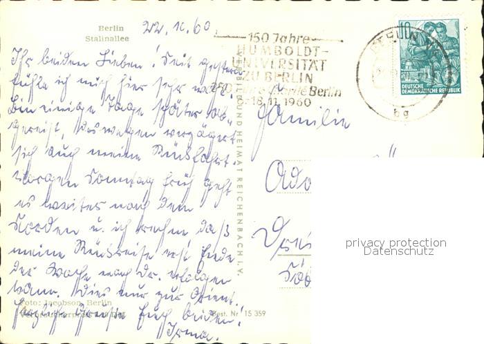 72508768 alte Postkarte BERLIN CITY Stalinallee postalisch gelaufen Erhaltung siehe scans KatCode: 11110011000000