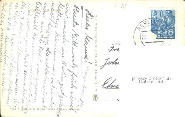 72058281 alte Postkarte BERLIN CITY Stalinallee postalisch gelaufen Erhaltung siehe scans KatCode: 11110011000000