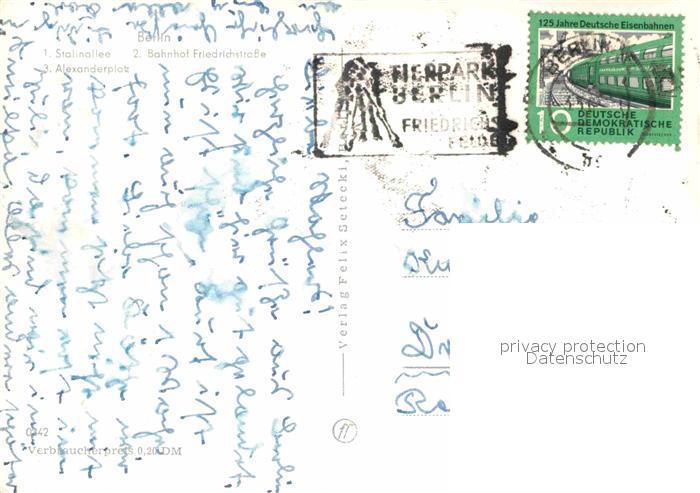 72636310 alte Postkarte BERLIN CITY Stalinallee Bahnhof Friedrichstrasse Alexanderplatz postalisch gelaufen Erhaltung siehe scans [AndreD76] KatCode: 11110011000000