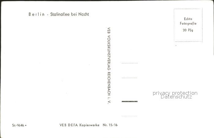 71983577 BERLIN CITY Stalinallee bei Nacht postalisch nicht gelaufen Erhaltung siehe scans KatCode: 11110011000000