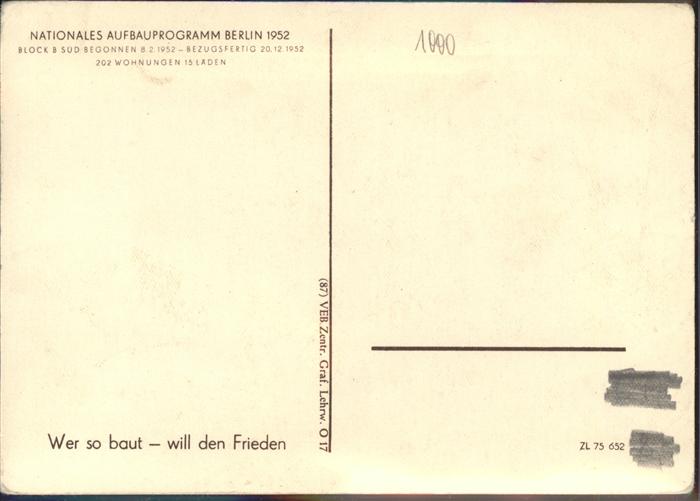 41314593 BERLIN CITY Stalinallee Block B Sued postalisch nicht gelaufen gute Erhaltung Alte Ansichtskarte Postkarte hz_W Katcode 11110011000000