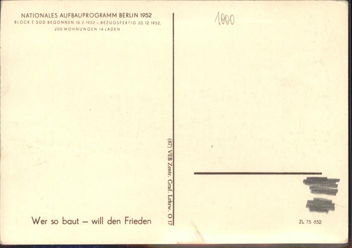 41314590 BERLIN CITY Stalinallee Block E Sued postalisch nicht gelaufen gute Erhaltung Alte Ansichtskarte Postkarte hz_W Katcode 11110011000000