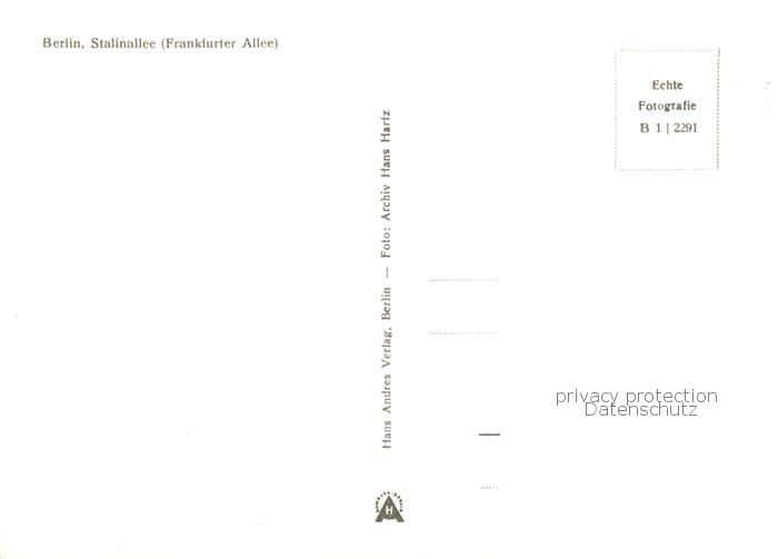 73852290 BERLIN CITY Stalinallee Frankfurter Allee postalisch nicht gelaufen Erhaltung siehe scans [FriedD77] Frie Katcode 11110011000000