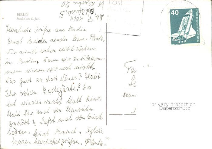 72128400 alte Postkarte BERLIN CITY Strasse des 17ten Juni postalisch gelaufen Erhaltung siehe scans KatCode: 11110011000000