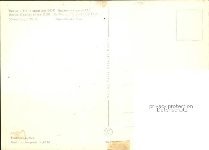 72001961 BERLIN CITY Strausberger Platz postalisch nicht gelaufen Erhaltung siehe scans KatCode: 11110011000000