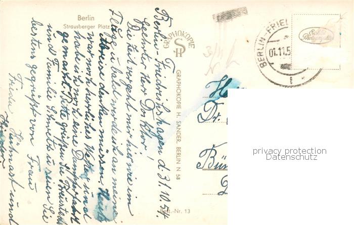 73821980 BERLIN CITY Strausberger Platz postalisch gelaufen Erhaltung siehe scans [FriedD77] alte Postkarte Frie Katcode 11110011000000